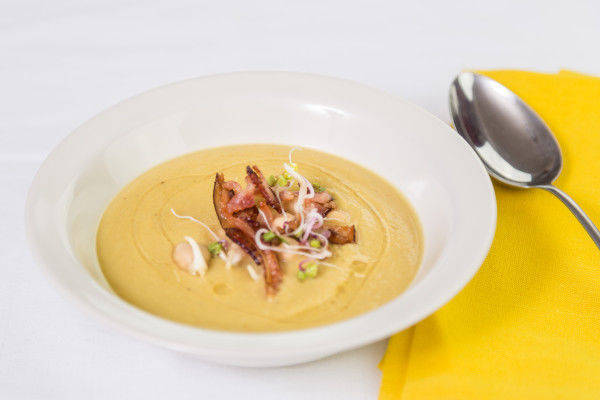 Na 3 porce budeme potřebovat: 400 g rajčatového pyré 2 stonky řapíkatého celeru 2 stroužky česneku 2 kostky bio polévkového