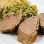 Moravskou krkovici jsem koupila na doporučení zkušené řeznice, protože se nemusí předem vařit a je šťavnatá. Rozkrájíme na kousíčky. Ty pak jak jsou vrstvíme na placičky a koulíme knedlíky. Uvaříme v silně osolené vodě 10 minut.