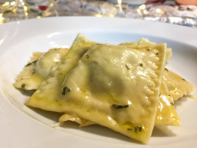 Domácí ravioly plněné pancettou a ricottou