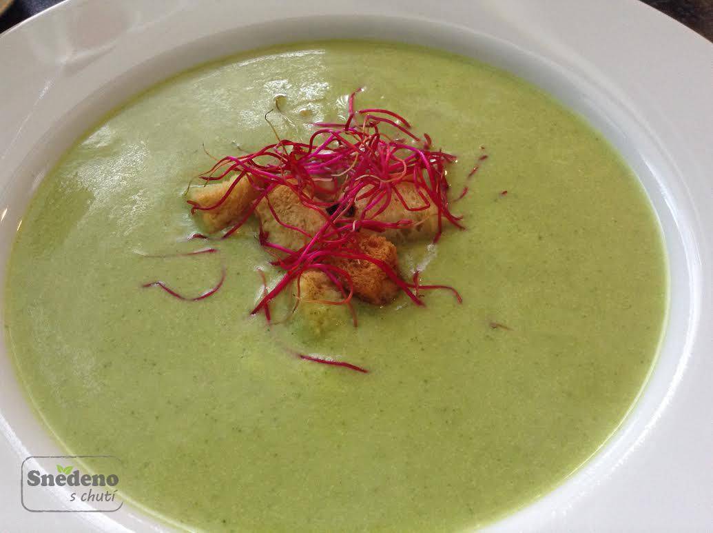Rohlíky rozkrájíme na kostičky a opečeme v troubě na plechu vytřeném olivovým olejem. Upečené houstičky poprášíme z rozprašovače troškou sojové omáčky. Na talíři polévku ozdobíme několika kostičkami rohlíku a naklíčenými semínky.