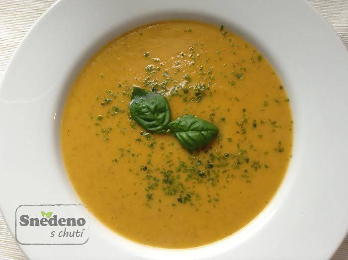 Na oleji orestujeme pokrájenou cibuli a česnek. Přidáme na kostičky nakrájenou mrkev, petržel a celer a orestujeme. Rajčata nařízneme, spaříme vroucí vodou a oloupeme. Z oloupaných rajčat odstraníme bubáky a nakrájíme na kousky. Cuketu podélně překrojíme a nakrájíme na půlkolečka. Přidáme do polévky. Ochutíme bujonem, oreganem a bobkovým listem. Chvíli povaříme, vyndáme bobkový list a rozmixujeme ponorným mixérem. Dle chuti okyselíme trochou citronu. Na talíři posypeme vločkami mořské řasy a ozdobíme bazalkou.