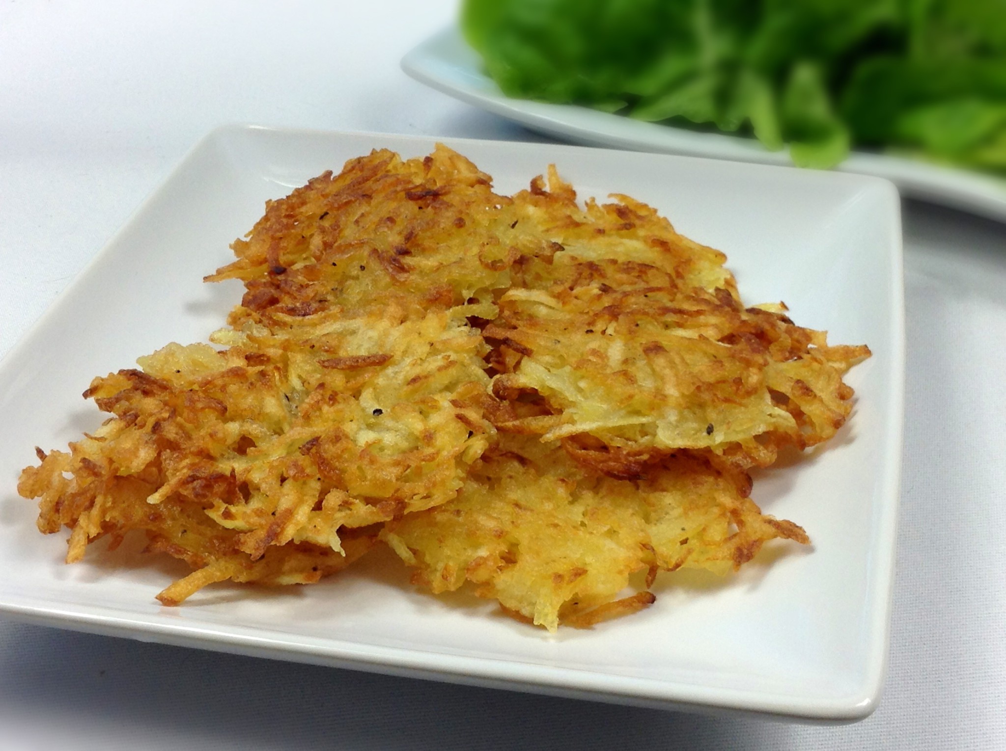 Brambory omyjeme, oloupeme a nastrouháme na hrubém struhadle. Osolíme, opepříme a přendáme je do cedníku, kde je necháme pár minut vykapat. Poté ještě rukou vymačkáme. Přendáme zpět do misky, přisypeme škrob a promícháme. Na teflonové pánvi rozpálíme trochu oleje a polévkovou lžící tvoříme malé placičky, které z obou stran opečeme dozlatova.